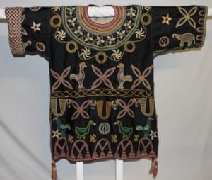 The selection I made was also based on trying to get as wide a geographical range of countries aspossible based on what our collections could offer. There is a bias towards sub-Saharan countries, and those in West Africa in particular, but in future it would be great to add to our holdings from countries such as Somalia, Egypt or Ethiopia. We have recently acquired contemporary textiles from Kenya, and for this exhibition have been lucky enough to loan not one, but two wedding dresses from a local, Kenyan- born, designer, Audrey Migot.